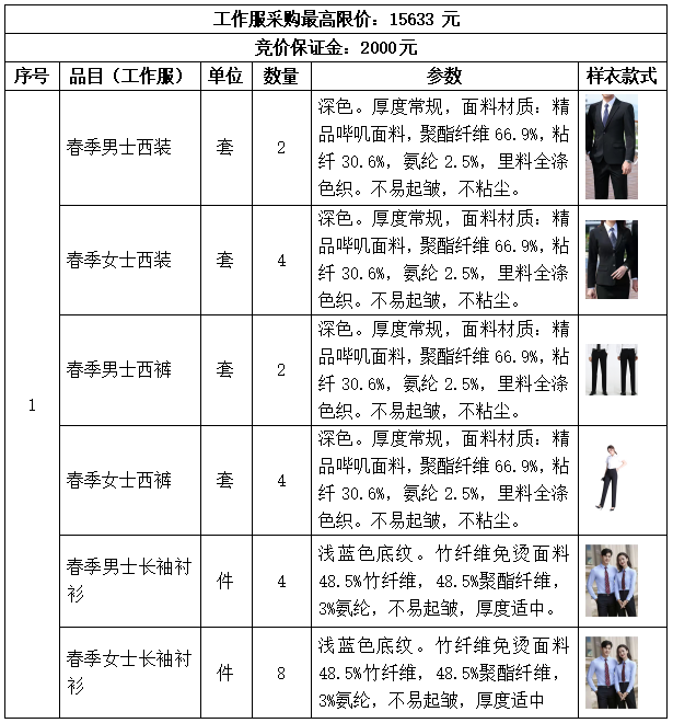 1.成交人在签收竞价结果通知书2个工作日内须上门给委托方工作人员进行量体裁衣,并于3个工作日内向委托方提供样式及面料样品供委托方选择,合同签订后3个工作日内向委托方提供样衣。