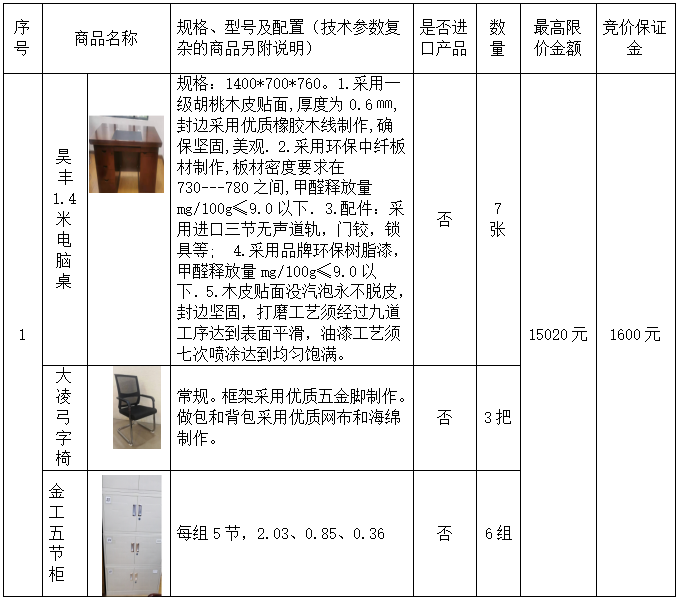 1.本次共采购办公桌7张,办公椅3张,档案柜6组。其中:集团总部:办公桌6张、椅2张、铁皮柜6组;连汇鑫矿业公司:办公桌1张,办公椅1张。