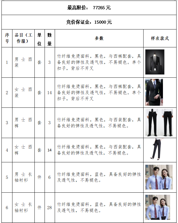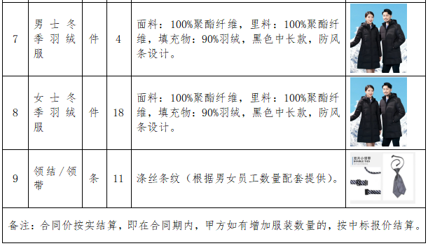 3.供货要求:具体以《工作服定制服务合同》为准)。